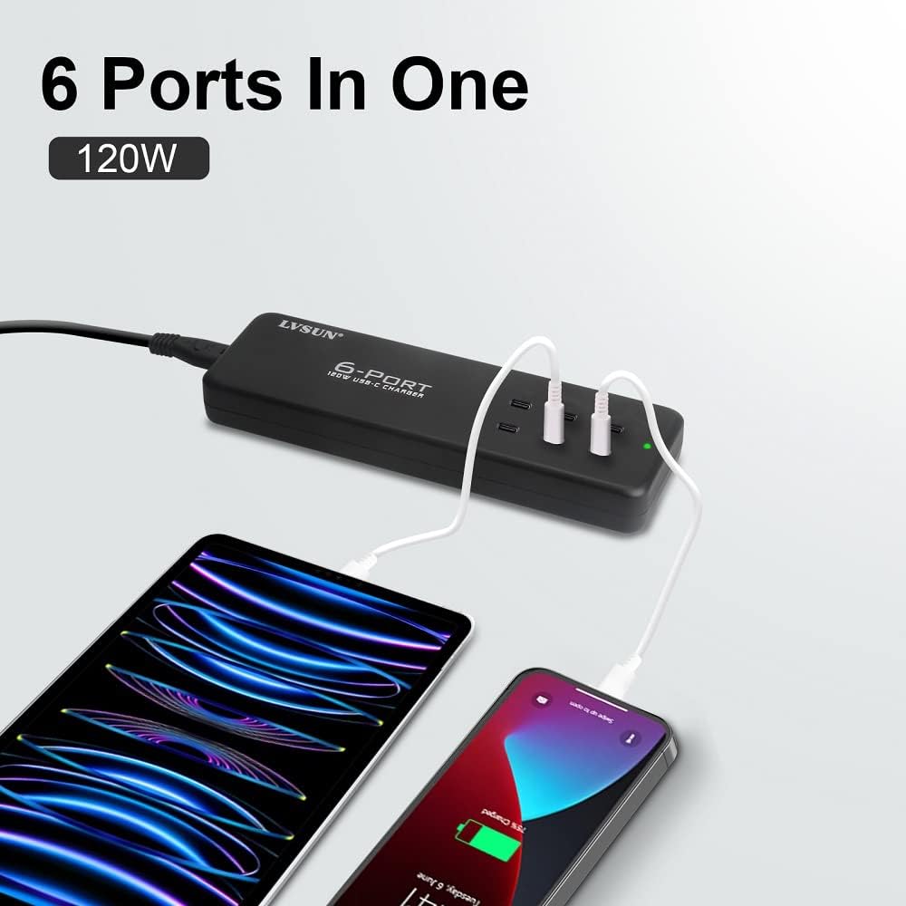 | Additional Features | 120W Fast-Speed Desktop Charging Station, 6 USB-C Port Charging Hub Block, A single USB port can reach 100W; using two USB ports at the same time, each USB port can reach 60W, Portable, Safety Efficient Fast Charging |
