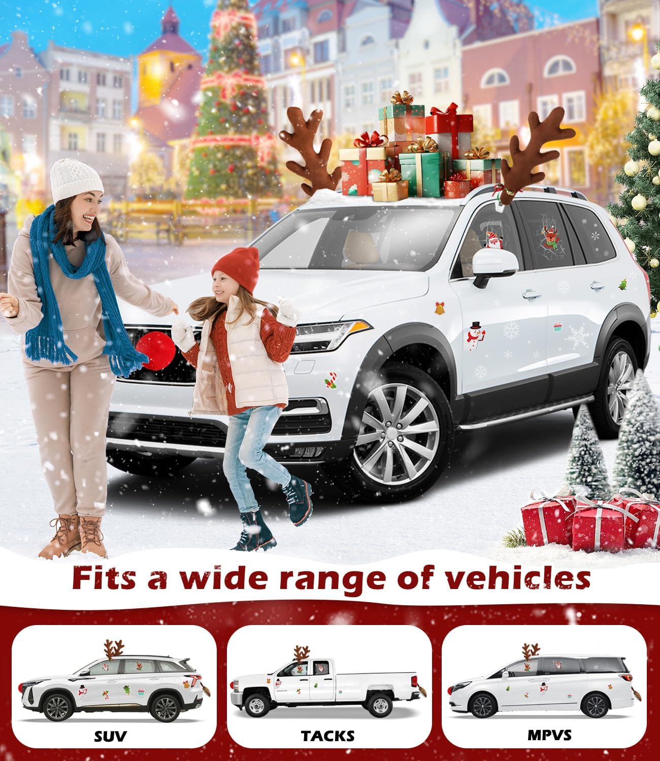 16” Led Reindeer Car Kit & 16” Branch-Shaped Christmas Antlers With Stickers