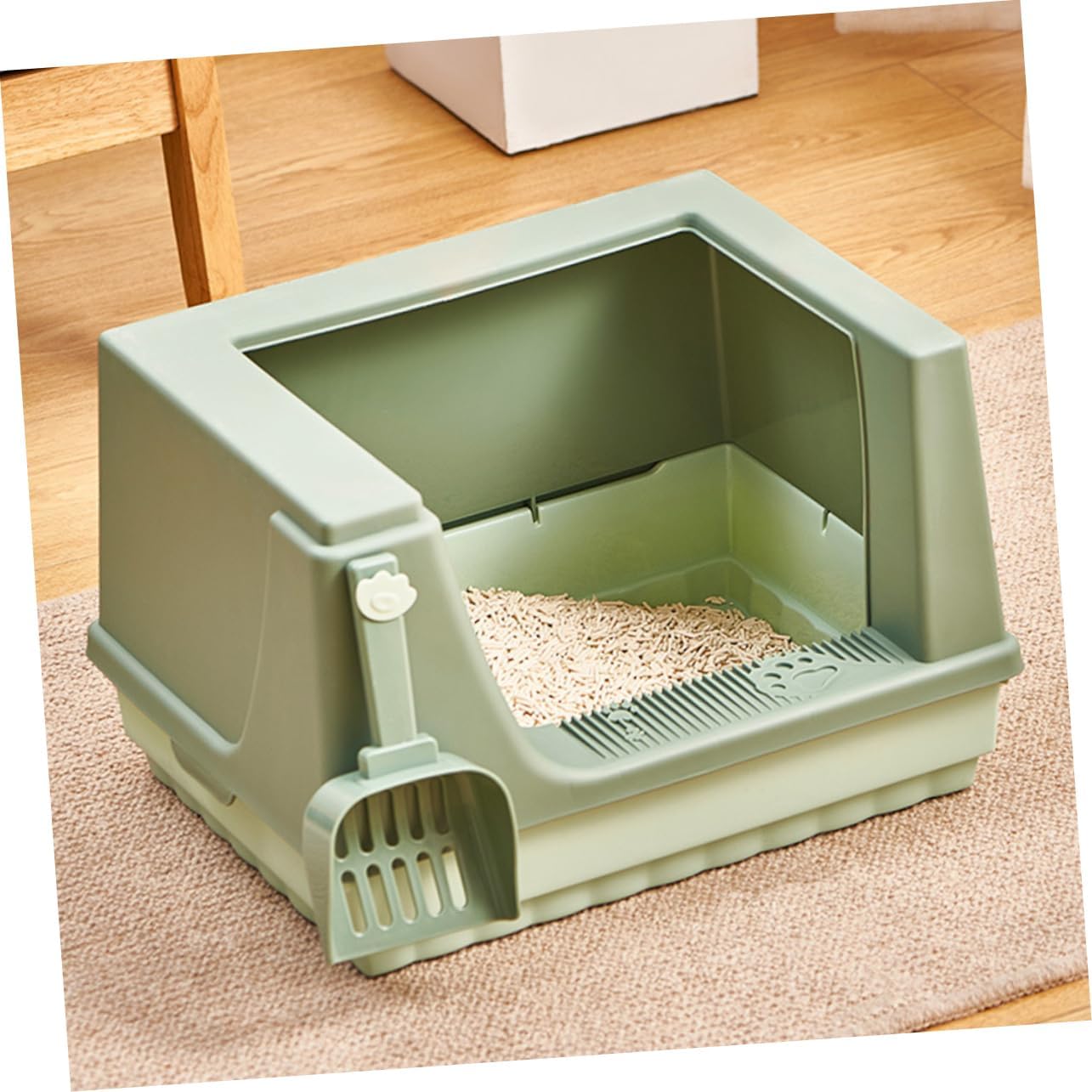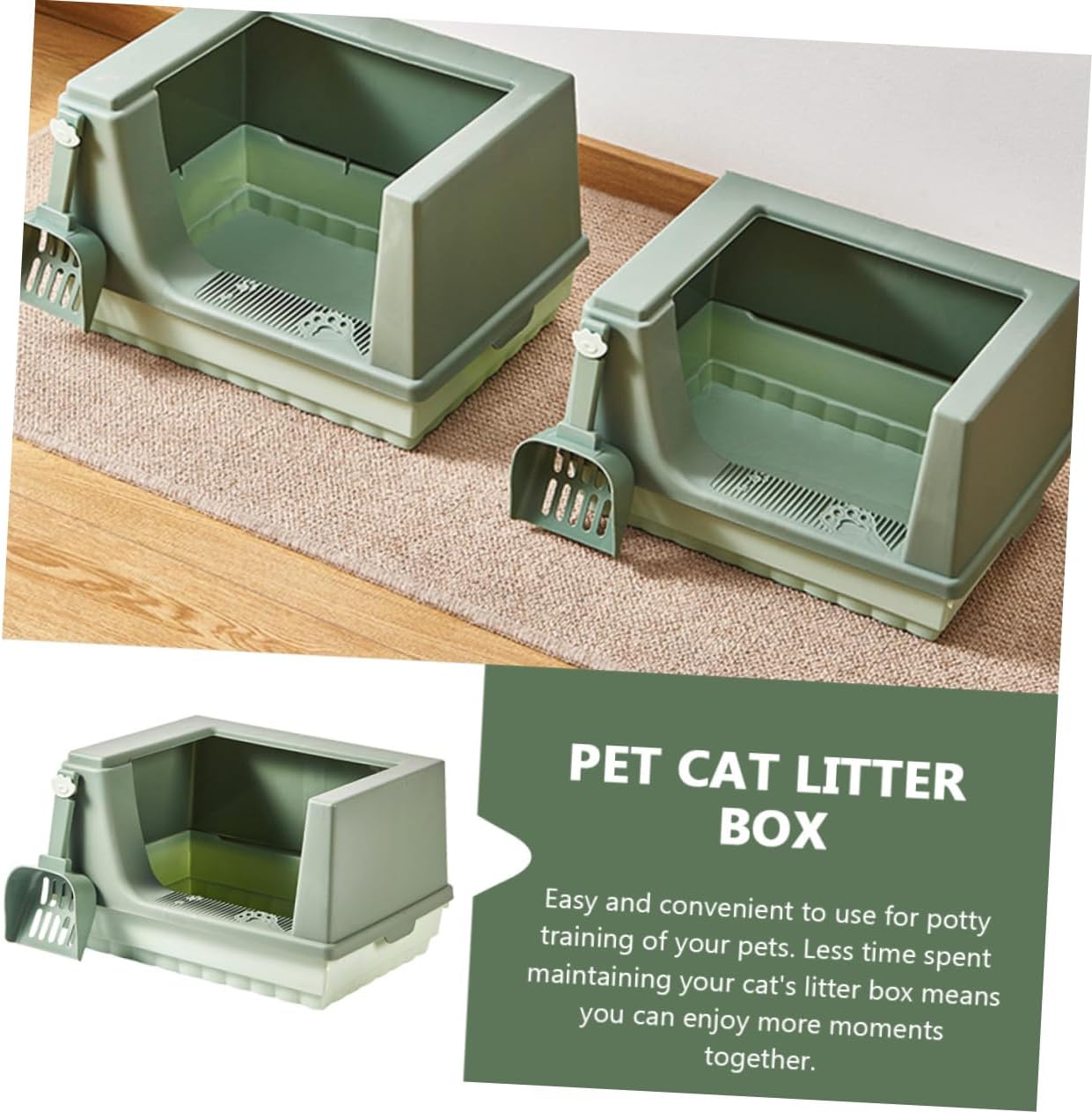 Package Include 1 x cat litter box 1 x cat litter shovel Features -Material: PP -splash Cat Litter Pan. -It has no lid, can directly scoop the cat litter, convenient and quick Cat Toilet. -It is spill prevention design, convenient and keep your home Pet Toilet. -Semi-closed design, large space and circulation space make the air fresh Litter Pan. -This litter box is made of high-class , don't have to worry about breaking it Cat Bedpan with Shovel. -You can easily buy this pet cat litter box at Kitten Litter Container.Goods InformationCat Bedpan Comes with a cat litter shovel to help you .Plastic Pet Toilet This is a cat litter box that is made of that are enough to last a long time. -Splashing Cat Toilet The semi-enclosed design can well prevent cat litter from splashing out. -splash Cat Litter Pan and