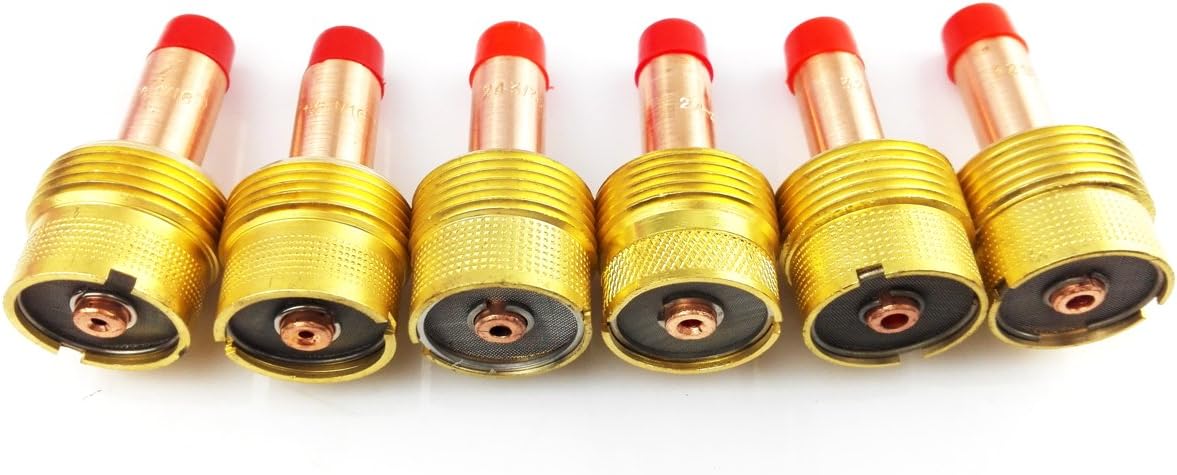 Details: TIG Alumina nozzle Larger Diameter 10pcs 3pcs 57N75 size 6 Alumina nozzle Jumbo D9.50mm x 3/8" 3pcs 57N74 size 8 Alumina nozzle Jumbo D12.50mm x 1/2" 2pcs 53N88 size 10 Alumina nozzle Jumbo D16.0mm x 5/8" 2pcs 53N87 size 12 Alumina nozzle Jumbo D19.50mm x 3/4" TIG Gas Lens Collet Body Larger Diameter 6pcs 2pcs 45V116 Jumbo Gas Lens Collet Body 1.6 mm & 1/16 " 2pcs 45V64 Jumbo Gas Lens Collet Body 2.4 mm & 3/32 " 2pcs 995795 Jumbo Gas Lens Collet Body 3.2 mm & 1/8 " TIG Collet 6pcs 2pcs 10N23 Collet 1.60mm & 1/16 " 2pcs 10N24 Collet 2.4mm & 3/32 " 2pcs 10N25 Collet 3.2mm & 1/8 " Insulators Cap Gaskets 1pc 1pc 54N63 Jumbo Cup Insulator TIG Back Cap 2pcs 1pc 57Y02 Back Cap Long 1pc 57Y04 Back Cap Short
