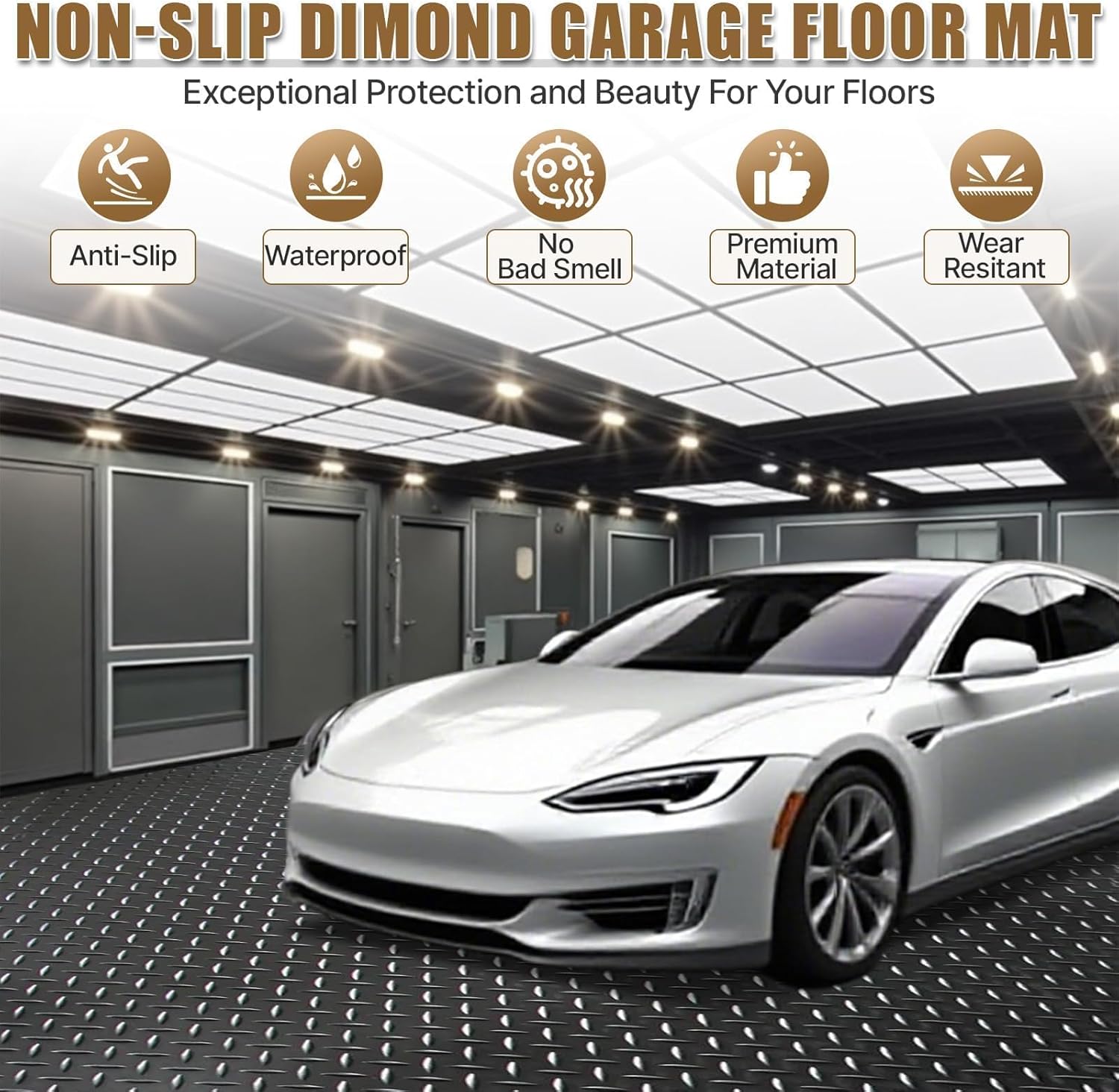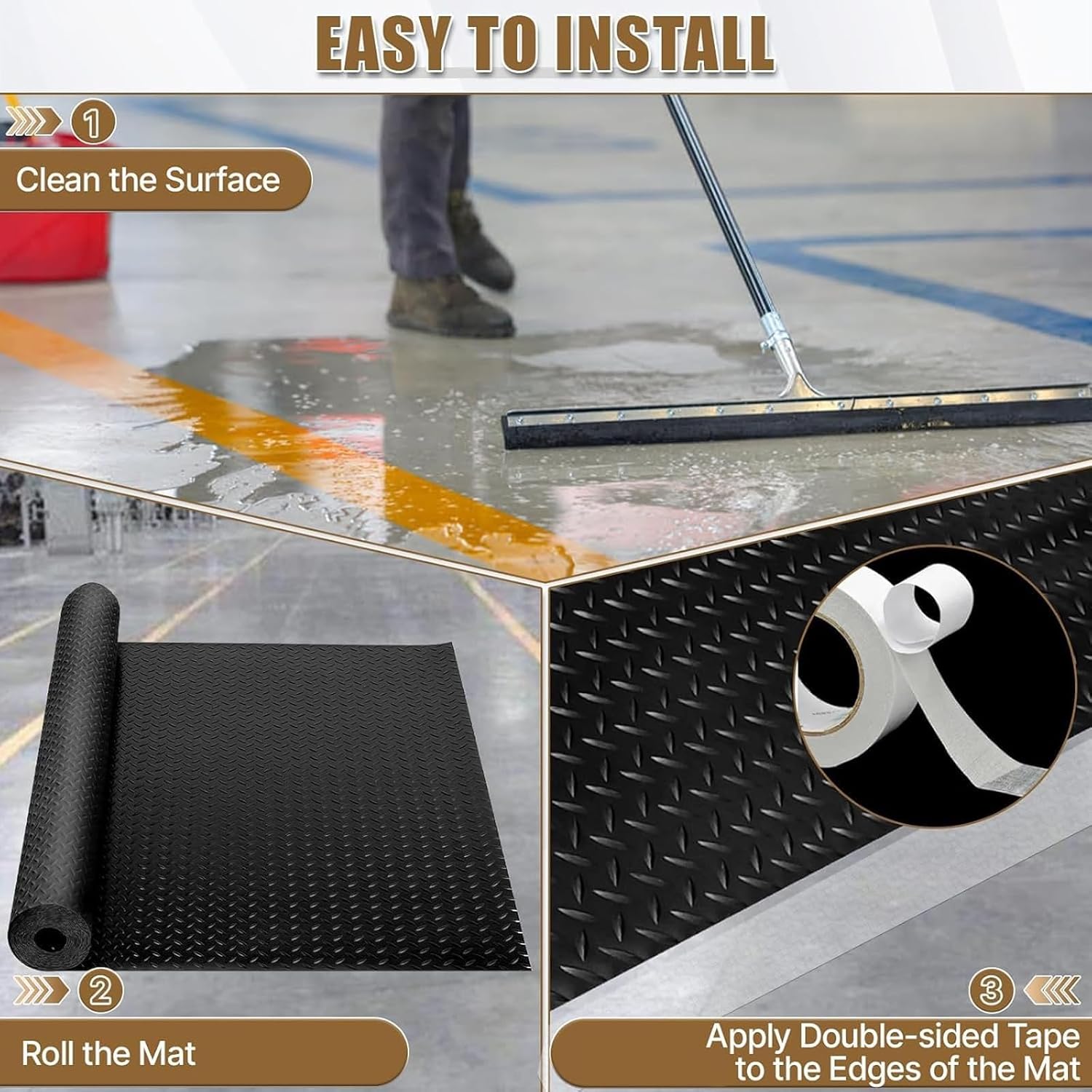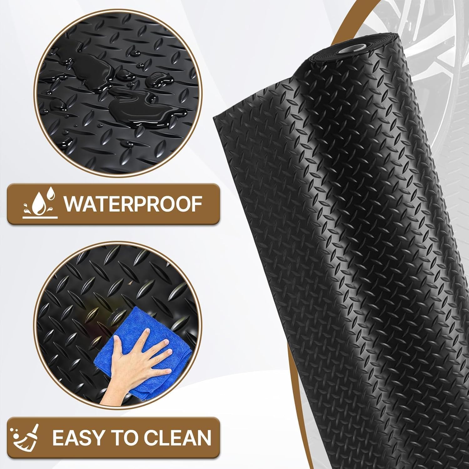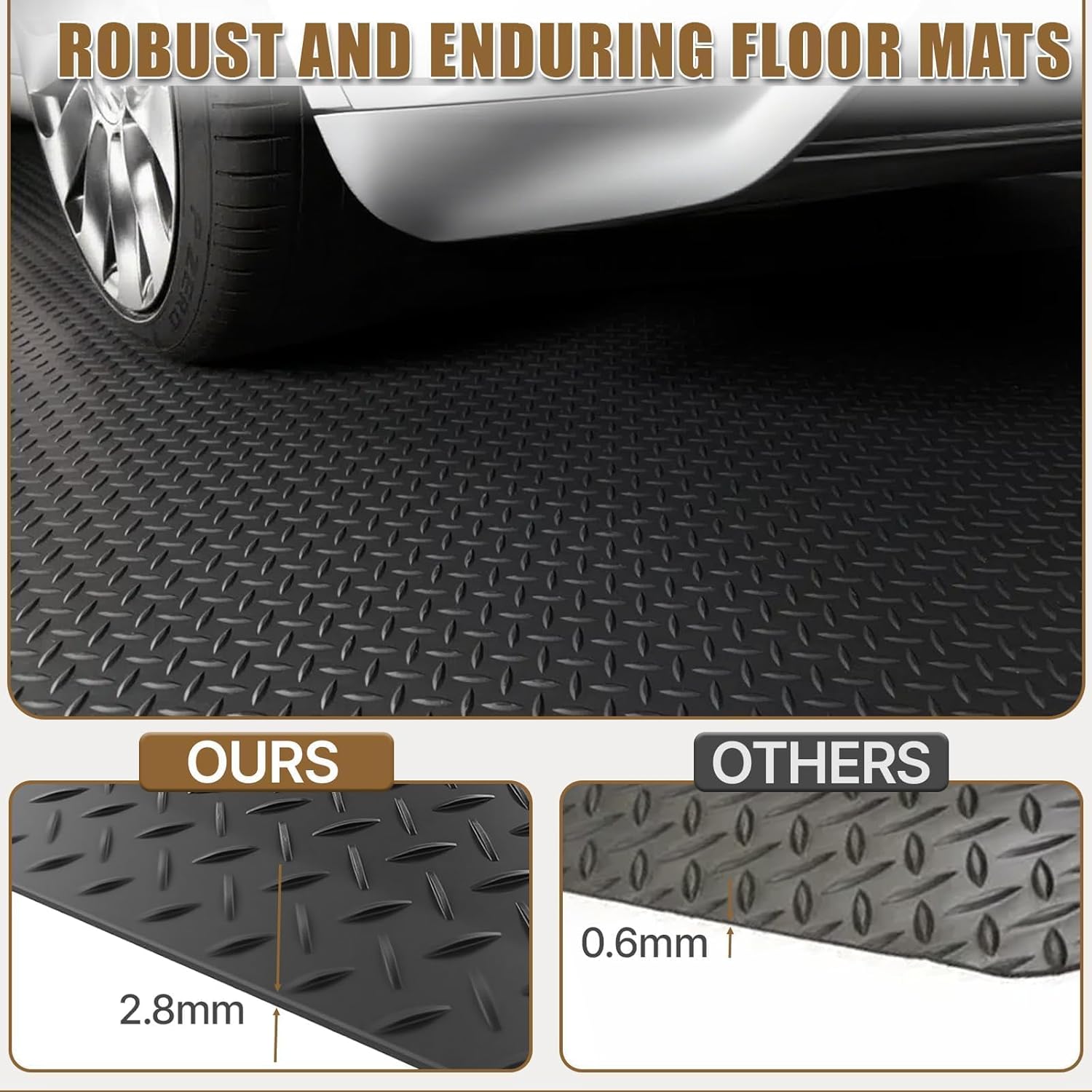Why Choose Our Heavy-Duty Garage Floor Mat?Engineered for maximum vehicle protection and floor preservation, this oversized mat delivers superior coverage and durability for demanding garage and workspace environments.Key Features:Spacious Coverage - 8' x 20' dimensions protect up to 160 sq ft for SUVs, trucks and trailersUltra-Durable Construction - 2.8mm thick PVC rubber withstands extreme weights without deformationPremium Protection - PVC rubber resists oil, mud and stains while remaining waterproofEasy Custom Installation - Simple cut-to-fit design Slip-Resistant Surface - Diamond-plate texture ensures safety and visual appealWhy It's Essential:Prevents expensive floor damage from heavy vehicles and equipmentMaintains clean garage floors with easy-to-wipe surfaceEliminates odor concerns with odorless PVC materialWorks beyond garages for basements, gyms and warehousesSaves money versus replacing damaged concrete flooringIdeal for homeowners and commercial operators alike, this heavy-duty mat provides reliable protection for valuable flooring while resisting stains, spills and heavy vehicle traffic.