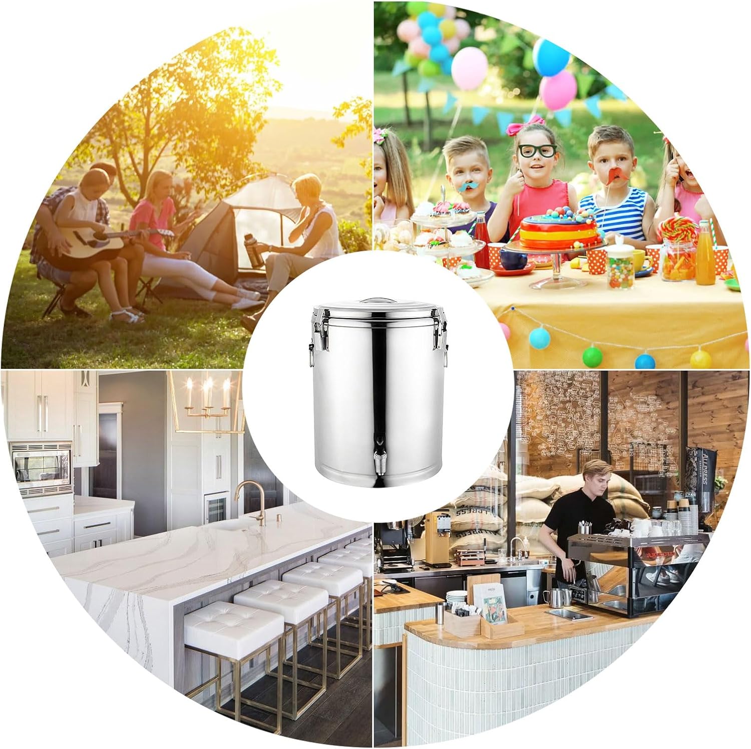 Thisstainless steel insulation soup barrel made of precision 201 stainless steel, double insulation, heat preservation for 6-12 hours.And its good insulation performance allows your guests to enjoy having a cold or hot drink at any time.Can be used to hold all kinds of delicious milk tea, coffee, juice, etc.This warmer kitchen tool with tap is safe, solid and serviceable, portable and useful, can be sent to your mates and family members who need to prepare food ahead on various occasions.Product name: stainless steel insulation soup barrel Material: high quality stainless steel (polyurethane foam)Capacity: 7L,14L,21L,31L,36.5L,41LStyle: single faucetProduct features: long-term heat storage, long-term cold lock, excellent sealing performanceScope: home kitchen/restaurant hotel/parties/outdoor/milk tea shop/canteen/factory, etc.Suitable for keeping food or drink hot and coldThe lid is air-tight, leak-proof, and can be firmly fixed during transportationRubber seal and stainless steel lockStable structure with metal handle on the sideVery suitable for beverages such as milk, coffee, milk tea, soup, sauce, stew, sweet wine or bowl