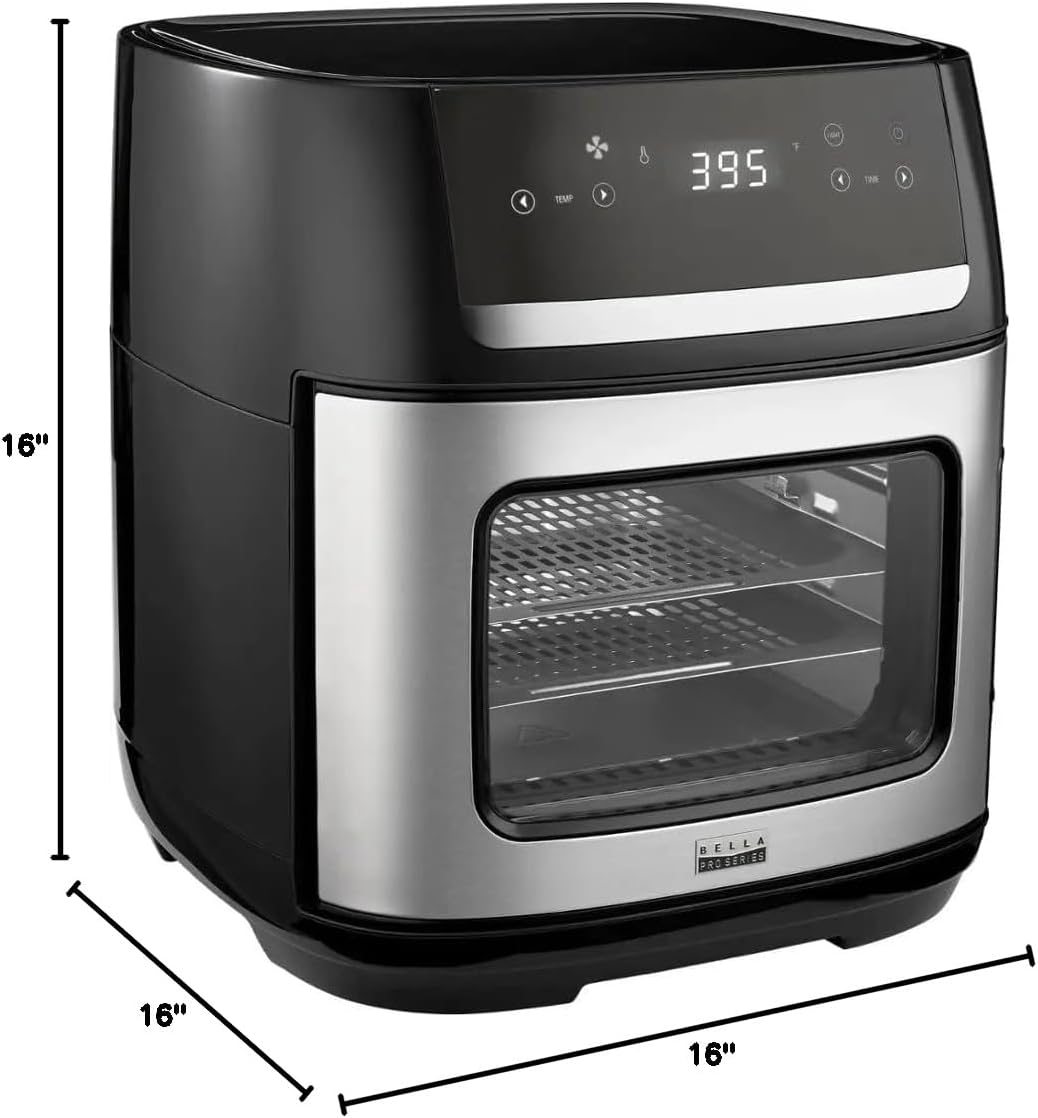 The BELLAS 12.6 Qt Touchscreen Air Fryer Pizza Oven With Rotisserie is your ultimate countertop companion for healthier and more versatile cooking. Featuring a powerful 1700-watt system and 10-in-1 functionality—including air fry, bake, roast, toast, reheat, and more—it offers unmatched performance in a sleek stainless steel design. The large 12.6-quart capacity makes it ideal for families or entertaining guests, while the intuitive touchscreen and digital timer make cooking effortless. From crispy fries to homemade pizza or even juicy rotisserie chicken, this all-in-one convection oven replaces multiple kitchen appliances—saving you space and time. Plus, with dishwasher-safe accessories and a transparent window for easy viewing, you’ll enjoy both convenience and style in your kitchen. Whether you’re health-conscious or simply looking for convenience, the BELLAS Touchscreen Oven is a smart, stylish addition to any modern kitchen.