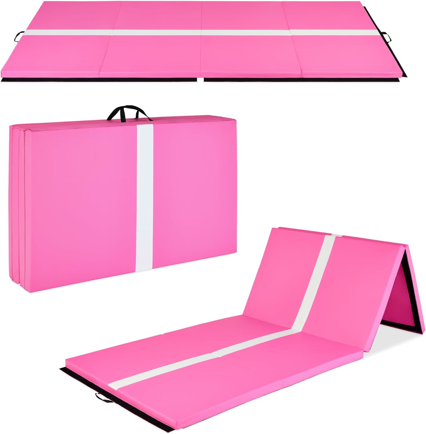 This 10’ gym mat is ready to get physical and help you channel your inner athlete. Designed with non-absorbent PU leather, this mat is perfect for whatever gets you moving: tumbling, yoga, aerobics, Pilates, martial arts, dance, and more! Whether you’re perfecting your tumbling or practicing your balance with a handstand, this gym mat’s ready to help you keep fit. SPECIFICATIONS: Expanded Dimensions: 10’(L) x 4’(W) x 2”(thick); Folded Dimensions: 48”(L) x 10”(W) x 10”(H); Weight: 14.95 lbs.; Color: Pink/Black; Material: PU Leather, High-Density EPE Foam; No assembly required.
