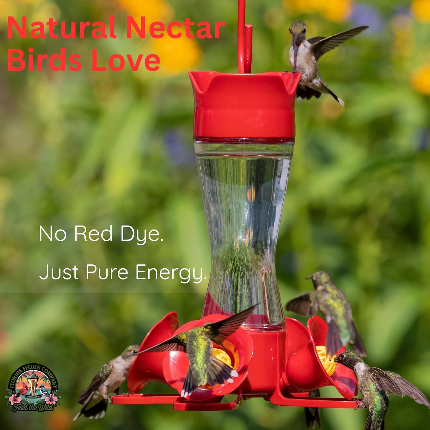 Welcome hummingbirds to your yard with a nectar that’s as pure, safe, and natural as the flowers they love. Florida Feeder Company’s Clear Hummingbird Nectar Powder is made from 100% pure cane sugar with no dyes, additives, or preservatives—just clean, energizing sweetness your backyard birds crave. Designed as a natural hummingbird food, it dissolves instantly in warm water—no boiling required—for easy, convenient feeder refills. Balanced at the proven 4:1 water-to-nectar ratio, our mix delivers hydration and energy that supports hummingbirds’ delicate systems and nonstop wingbeats. Ideal for Ruby-Throated, Anna’s, Black-Chinned, and other species across North America. Packaged in a resealable stand-up pouch with a scoop, mixing chart, and QR code for instant reordering, ClearCane Nectar is bird-safe, backyard-tested, and proudly made in the USA by a family-owned company that puts birds first.