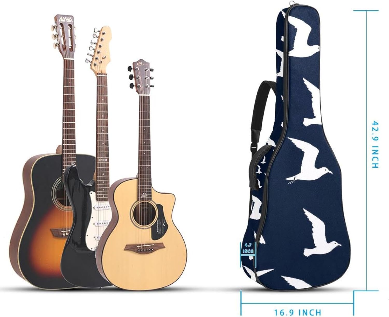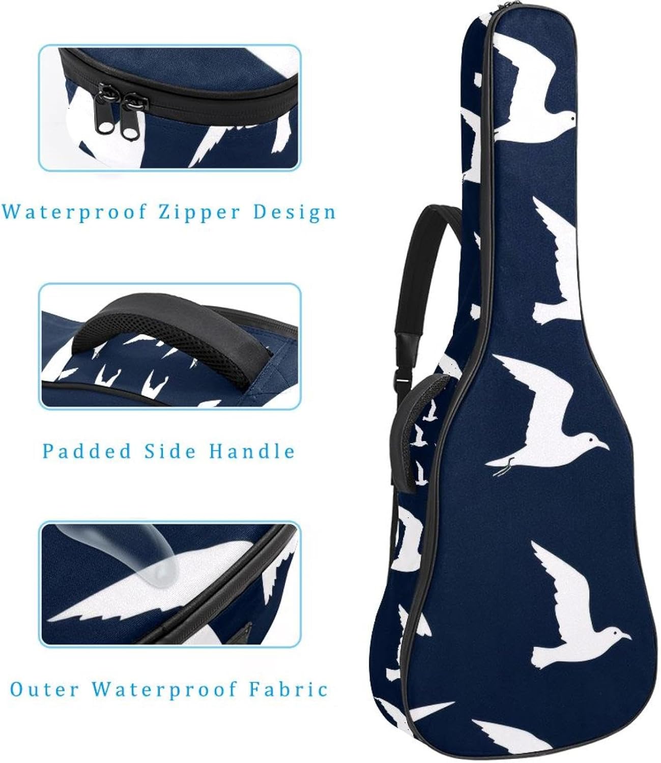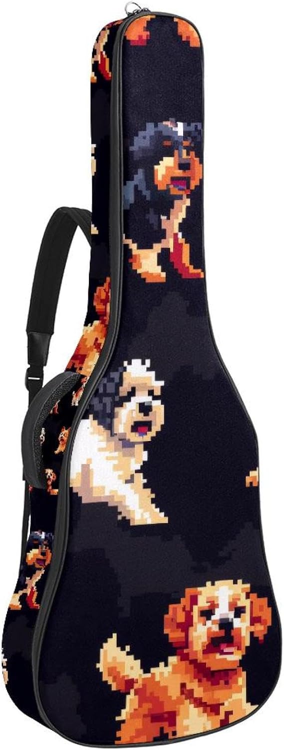 Give your valuable guitar the premium protection it deserves. Our Cute Printed Guitar Gig Bag is engineered for the modern musician who demands both security and convenience. Whether you're heading to a gig, a practice session, or on a short trip, this bag ensures your instrument arrives in perfect condition, ready to play.Constructed from durable, waterproof Oxford cloth, this bag stands up to the elements and the test of time. The interior is a sanctuary for your guitar, featuring ultra-thick padded sidewalls and a soft, anti-scratch lining that cradles your instrument, preventing scratches and damage. The heavy-duty rubber base acts as a shield against everyday bumps and allows for stable placement on any surface.Organization is effortless with multiple dedicated compartments. Two main storage pockets keep all your essential accessories—like a foldable music stand, tuner, picks, cables, and extra strings—neatly sorted and easily accessible. Never fumble for your tablet or sheet music again; the specially designed back pocket keeps them safe and separate.For a perfect, secure fit, the adjustable neck support and internal Velcro strap ensure your guitar does not shift around inside the bag, providing peace of mind with every carry.Care Instructions: To preserve the quality and appearance of your gig bag, please do not machine wash. Simply wipe clean with a damp cloth to remove any dirt or stains.