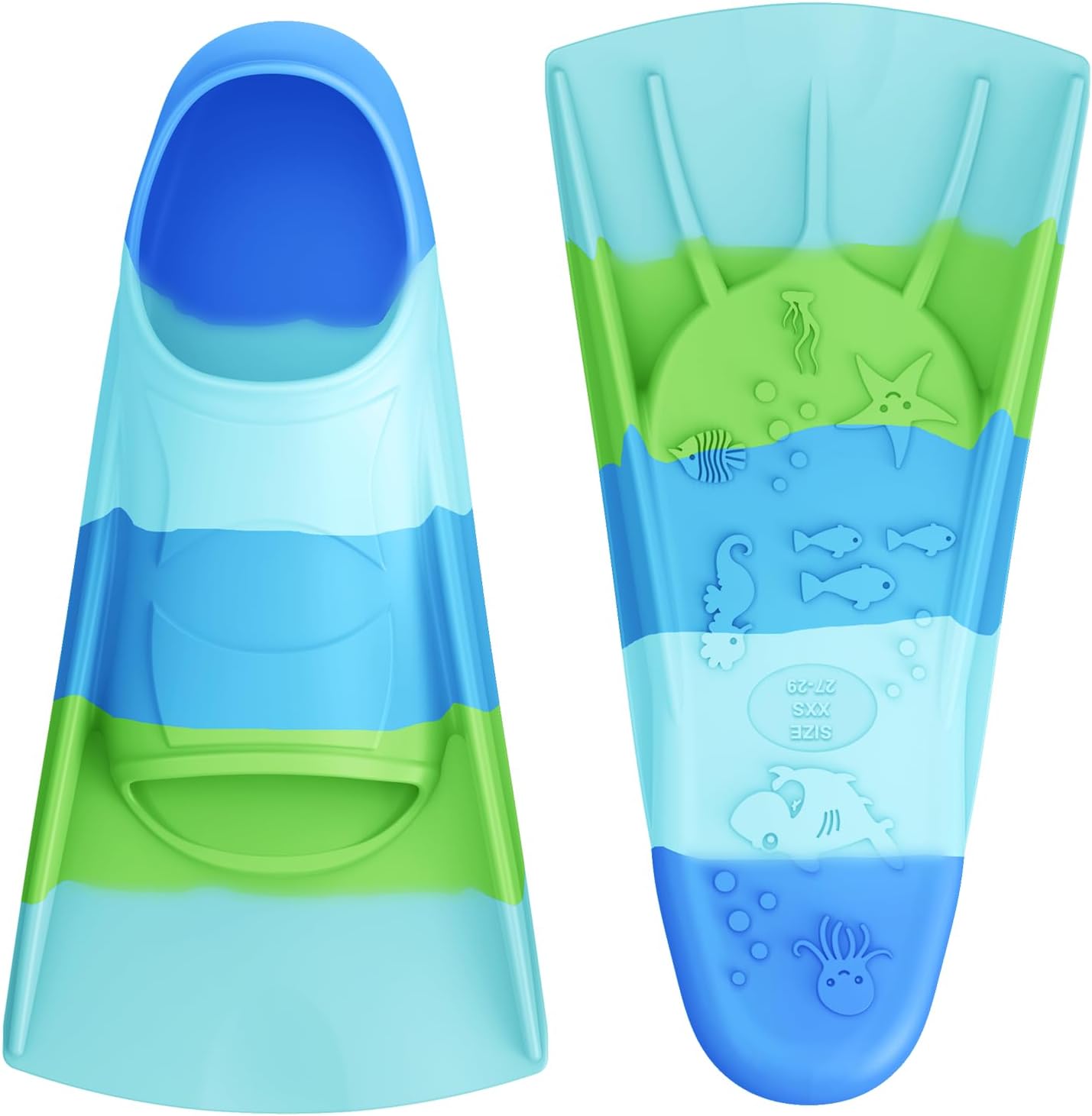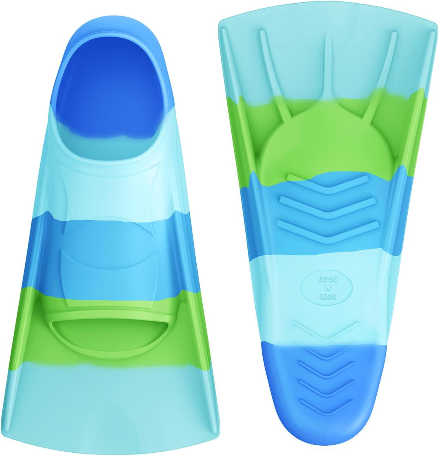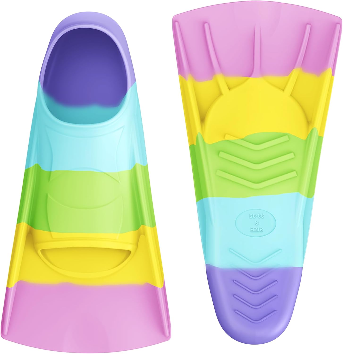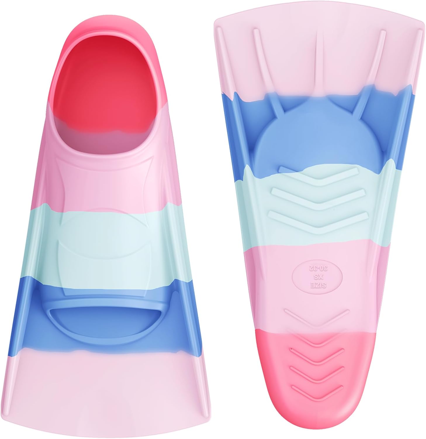 Gintenco Swim Fins, Kids Swim Training Fins for Lap Swimming, Travel Size Flippers with Mesh Bag, Silicone Swimming Fins for Kids Teens Adults Women Men