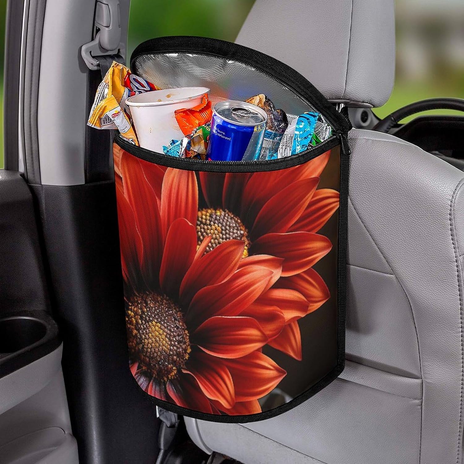 This stylish garbage bag storage bag features a built-in waterproof and leak-proof lining,effectively protecting the trash can and your car from beverage and grease stainsThe appearance design of car trash cans with lids is becoming more and more beautiful and fashionable. It is not only practical, but also adds a sense of decoration to the car