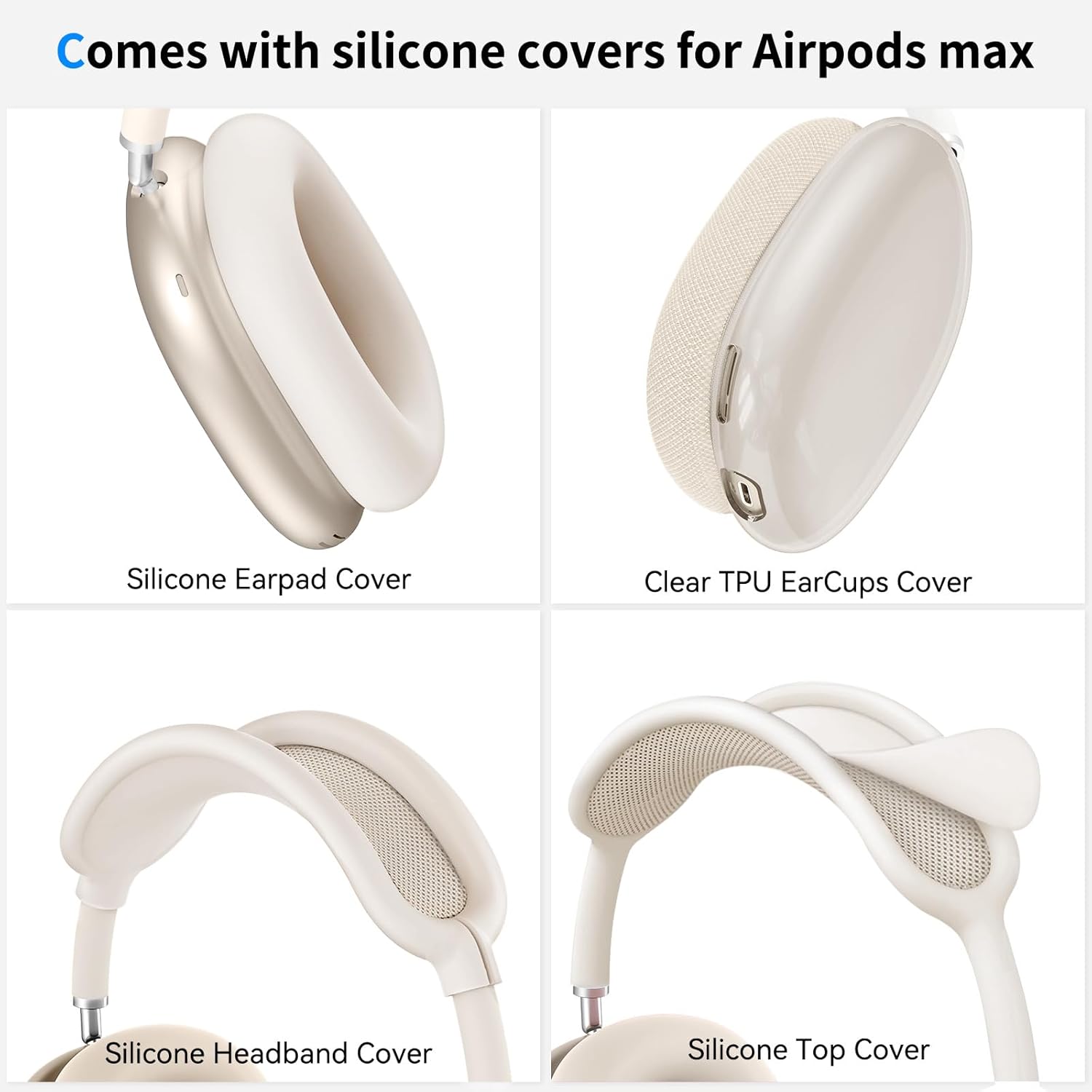 | BuiltIn Media | A Hard Carrying Case for AirPods Max, A pair of clear TPU AirPods Max Ear Cups Covers, A pair of Silicone AirPods Max Earpad Covers, A Silicone AirPods Max Headband Cover, A Silicone AirPods Max Top Cover. |