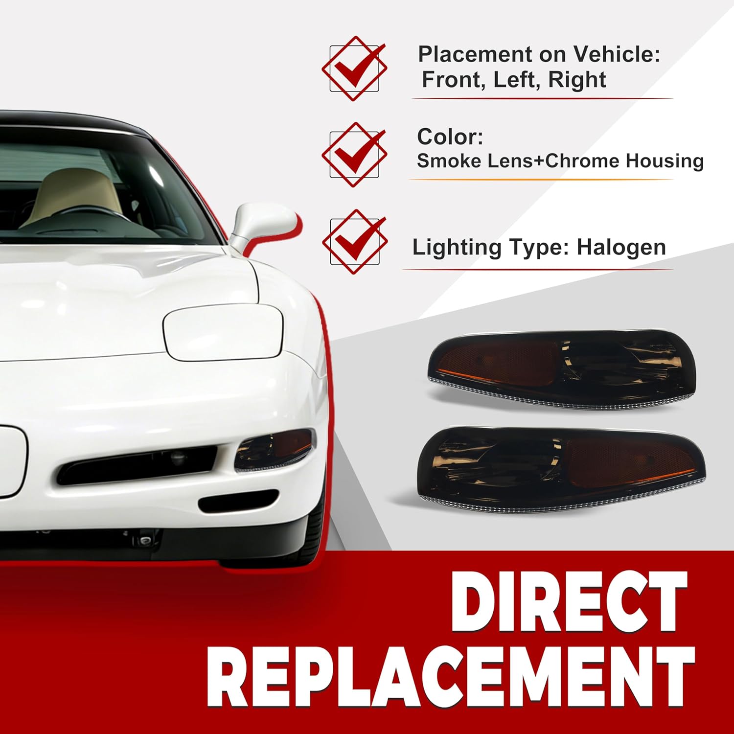 | Included Components | 1 pair of turn signal lights(smoke lens chrome housing) |