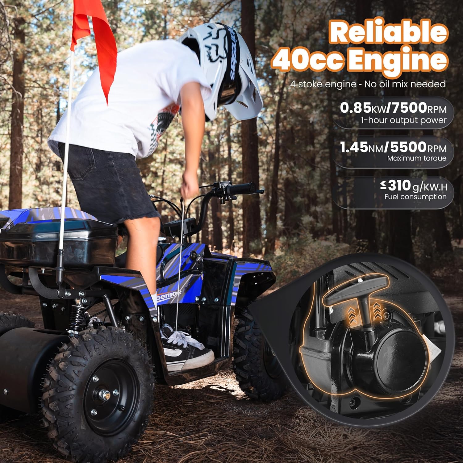 | Included Components | ATVx1,Handlebar x 1, Lgnition key x1, Rear and Front shock x1, Owner’s manual,Tool kit |