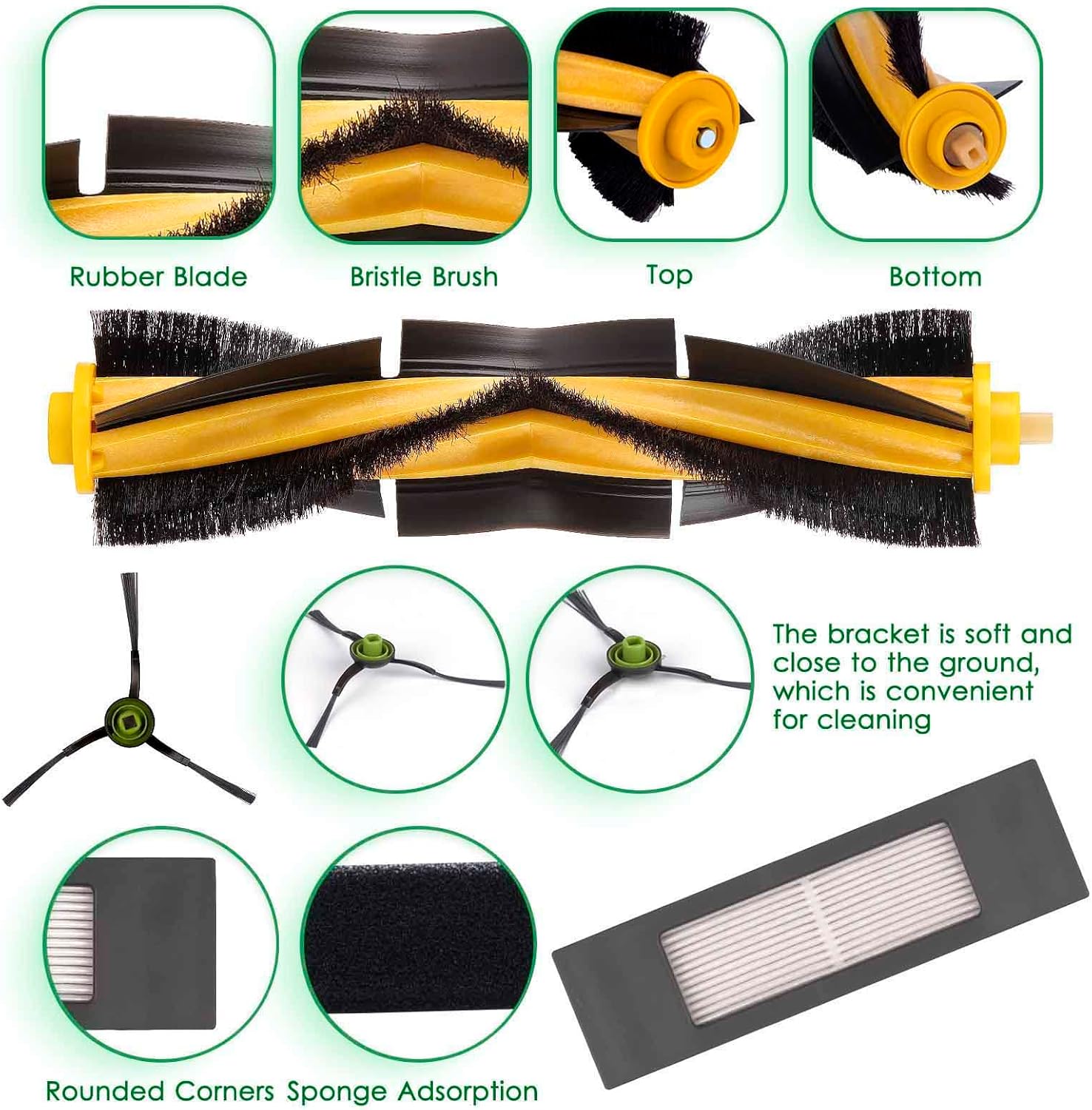 | Included Components | Main Roller Brush*1/ HEPA Filters*3/ Side Brushes*6 |