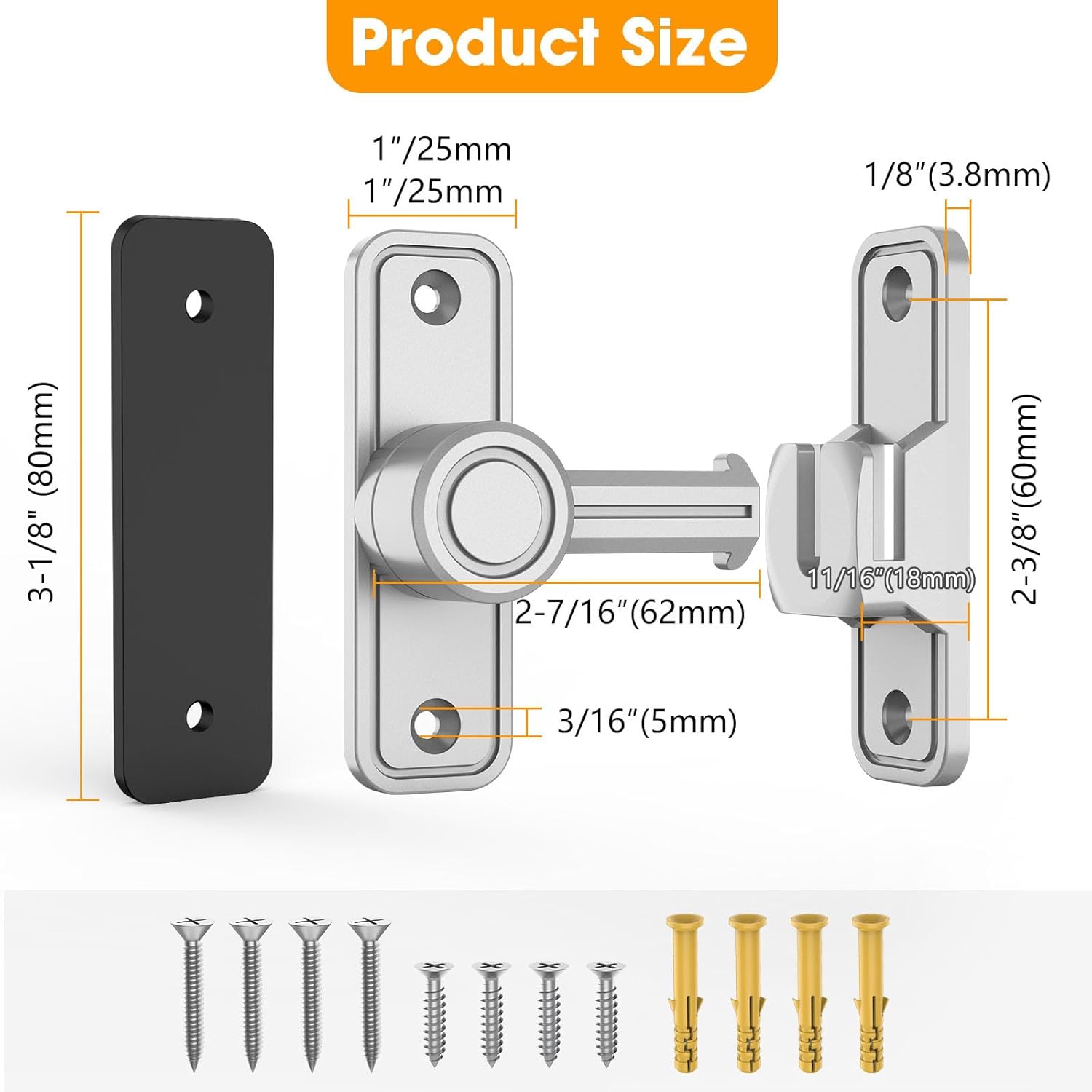 Sliding Barn Door Lock Hardware, 90 Degree Locks for Barn Doors, Flip Gate Latches for Barn, Garden, Bathroom, Outdoor, Garage, Window