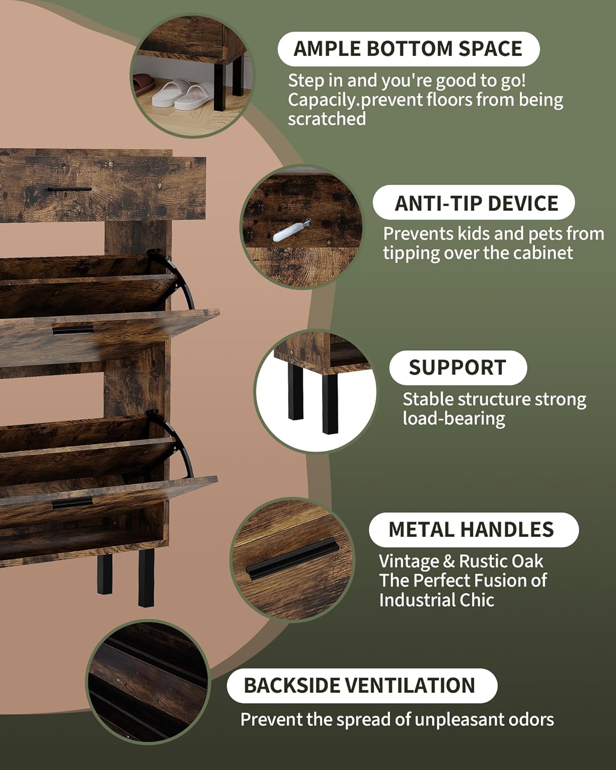Upgrade Your Entryway Organization with This Sleek Shoe Storage CabinetSpace-Saving Design: Our narrow shoe cabinet is expertly crafted to maximize storage in tight entryways, hallways, or mudrooms, helping you keep your home clutter-free and welcoming.Dual Turn Drawers: Featuring two smooth turn drawers, this shoe organizer offers quick and easy access to your footwear, while keeping shoes neatly hidden from view for a clean and tidy look.Adjustable 3-Tier Shelving: Flexible internal shelves allow you to customize the storage space to fit slippers, sneakers, heels, or even boots, ensuring every pair has its place.Freestanding and Versatile: The sturdy wooden construction means you can place this cabinet anywhere—entryway, hallway, porch, or mudroom—without the need for wall mounting.Modern Minimalist Style: Finished in clean white, this shoe rack blends seamlessly with a variety of home décor styles, adding a touch of elegance to your space.Large Capacity: With multiple drawers and adjustable shelves, this shoe cabinet is ideal for families or anyone who wants to organize multiple pairs of shoes efficiently.Whether you need a hidden shoe rack cupboard for your entryway or a functional storage solution for your hallway or porch, this freestanding shoe cabinet combines style, capacity, and convenience. Bring order and sophistication to your home with this versatile shoe storage solution!