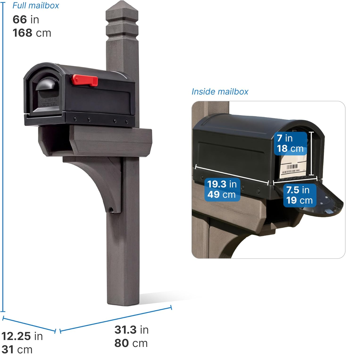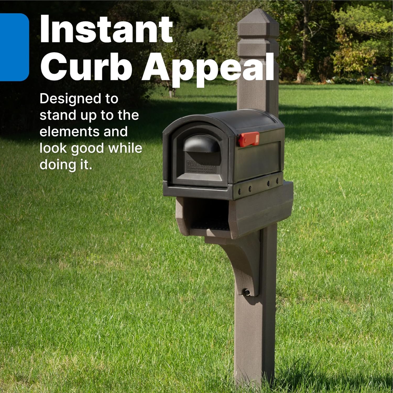 Improve your curb appeal with our stylish Lakewood Mailbox and Mailbox Post kit, you may improve the curb appeal of your home. This mailbox post adds a touch of refinement to your home with recessed panels and crown and cove molding. The wide interior, which holds letters, magazines, and small items, keeps your mail and newspapers clean and dry, assuring secure and organized mail delivery. Please keep in mind that the mounting post and house numbers are not included. With all of the necessary components included - mailbox post, mailbox, and appropriate hardware - installation is simple. Our simple instructions will walk you through the steps. Use a 4"" x 4"" wooden post (available separately) for mounting. With the mailbox's strong magnetic closure, you can rest assured that your mail and small packages are safe. This adaptable mailbox is suitable for domestic settings, offering a dependable and secure postal solution. Our long-lasting construction assures that this mailbox and post combo kit will resist the elements for many years to come. Our mailbox preserves its attractive appearance and performance without the use of paint, sanding, or staining. This large, and secure decorative mailbox post will complement the exterior of your property.