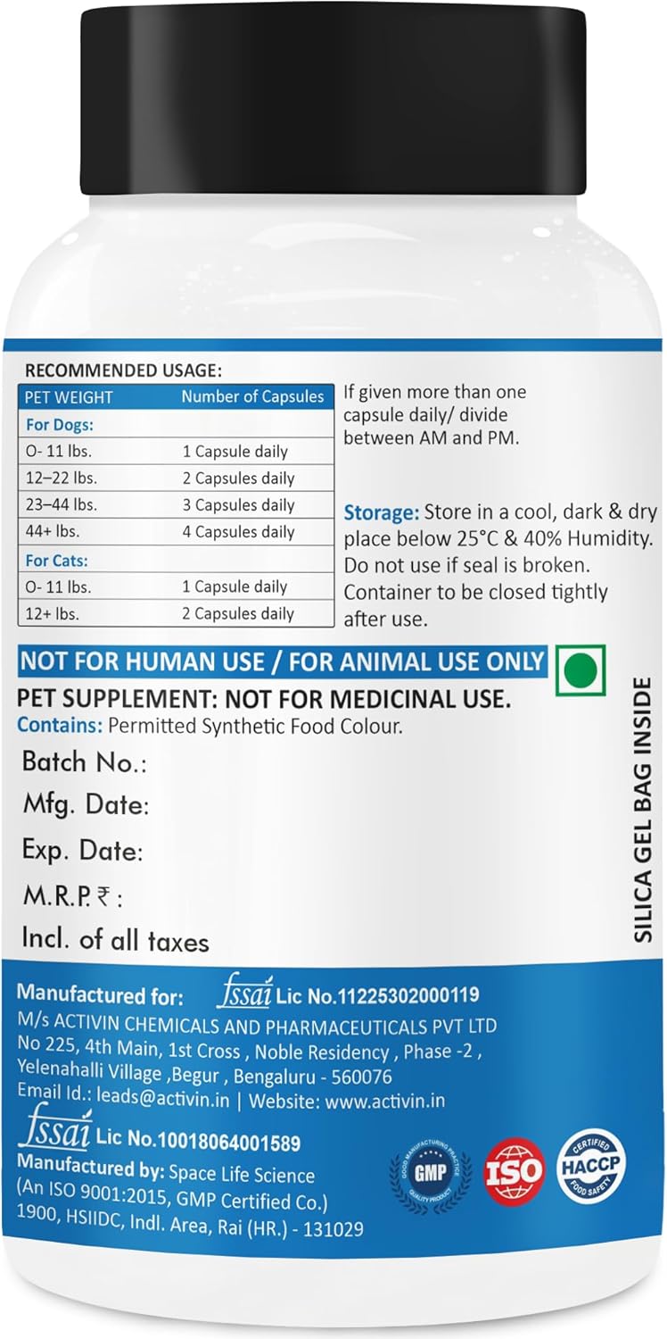 Activin Vitamin E Capsules for Dogs & Cats provide essential antioxidant nutritional support to help maintain overall pet wellness. Vitamin E plays a key role in supporting normal skin and coat condition while contributing to immune system function. This veterinary-formulated supplement is designed for daily use and is suitable for dogs and cats of all breeds. The easy-to-use capsule format allows for flexible administration, either given whole or mixed with food. Activin Vitamin E Capsules are intended to complement a balanced diet and support your pet’s everyday nutritional needs.